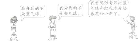 张老师把红、白、蓝三种颜色的气球分给三位小朋友,根据下面的对话,你能猜出他们分到的各是什么颜色的气球吗?