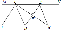 的中位线,点F在DE上,且