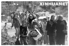 材料一:图片内容为《巴勒斯坦难民营的生态》图片