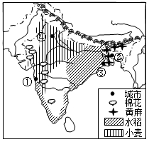 如图是南亚地区农作物分布图,下列说法正确的是( )