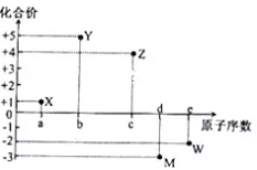 五种短周期元素X、Y、Z、M、w的原子序数与其常见化合价的关系如图所示,下列关系不正确的是( )