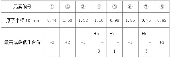 表中①~⑥为短周期元素及相应部分原子半径的数据。下列说法正确的是( )