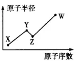 W、X、Y、Z是四种常见的短周期主族元素,其原子半径随原子序数的变化如下图所示。已知Y、Z两种元素的单质是空气的主要成分,W原子的最外层电子数与Ne原子的最外层电子数相差1。