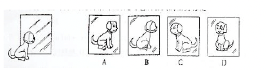 小狗皮皮看到镜子里的自己,觉得很奇怪,此时它所看到的全身像是( )