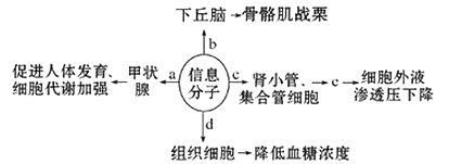 如图为人体内某些信息分子作用的示意图,a、b、c、d表示信息分子,据图分析,下列叙述正确的是( )