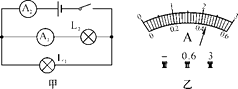 某同学在做“用电流表测电流”的实验,电路如图甲所示。按电路图正确连接电路并接通开关S后,电流表A