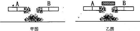 步骤2:将两个磁铁如图乙放置,手拿住上面的磁铁,下面的磁铁不会掉落。