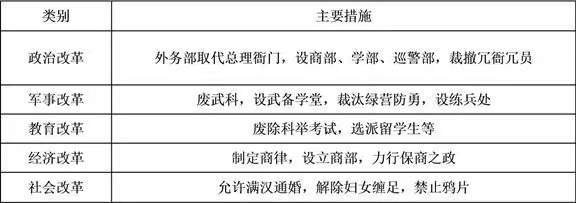 下表为《1901―1905年清末新政措施一览表(部分)》。据此可以推知,清末新政