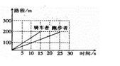 如图所示,是一个骑自行车的人与一个跑步的人运动的路程与时间变化的图线,根据该图线能够获得合理的信息有。示例:信息一,他们同时开始运动: