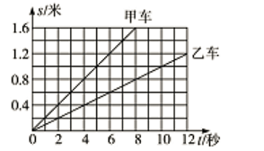 甲、乙两小车同时同地同方向做匀速直线运动,它们的s-t图像如图所示。经过6秒,两车的位置关系是