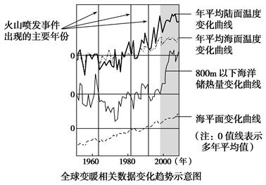 阅读图文材料,完成下题。全球变暖导致的环境变化越来越引人关注。地理小组的学生将图中近十几年来(阴影所示)相关数据的变化趋势与以前进行了比较。学生经比较后得出的结论,与图中所示信息相符的是( )