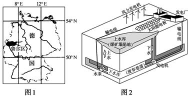 阅读图文资料,完成下列要求。德国煤炭开采历史悠久,煤矿开采深度不断增加,2018年12月关停了最后一个煤矿――鲁尔区Prosper-Haniel煤矿。根据德国能源发展规划,2022年最后一座核电站也将结束运营,可再生能源的发电量将达到发电总量的31%。抽水蓄能电站是目前最可靠、最经济的储能装置。鲁尔区Prosper-Haniel煤矿计划将原矿址改造为综合性的抽水蓄能电站,其设计原理是:利用地表的煤矿塌陷地作为上水库,将地下的废弃巷道改建为下水库,用电低谷时,利用可再生能源电力将下水库的水抽回上水库,蓄积能量;用电高峰时,将上水库的水释放到下水库来发电。图1和图2分别为鲁尔区地理位置图和综合性抽水蓄能电站示意图。