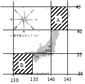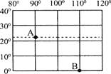 A点的纬度是________;B点的经度是________。