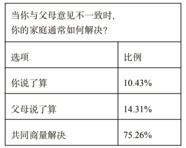 某校开展了以“建设和谐家庭”为主题的问卷调查.下表是其中一个问题的调查统计 结果,这一结果可以反映出( )