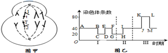 图甲中染色体1 和2 的相同位置上分别为t 和T 基因,这种现象产生的原因是等位基因分离