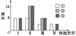 如图表示雄果蝇进行某种细胞分裂时,处于四个不同阶段的细胞(Ⅰ ~Ⅳ) 中遗传物质或其载体(① ~③) 的数量。下列表述错误的是 ( )
